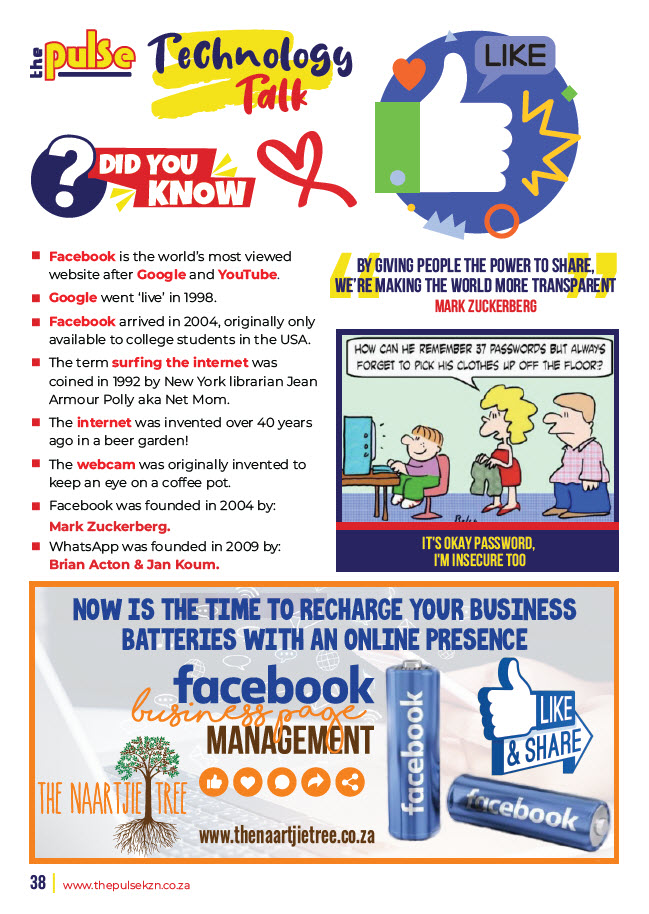 In every issue we publish a selection of features, some business related or just interesting pages of trivia - Home Improvement, Let’s Explore, Beauty Buzz, Motoring, Property, Food Facts, Puzzles, Finance, Technology, Tourism and some other categories. To be advertised in these features or on the page facing these special pages with options of editorial or photo’s please email sandy@thepulsekzn.co.za for more information and availability and a personalized quotation. Advertising as a strip size advert on a featured page is also available. Some various examples of these pages can be seen below.