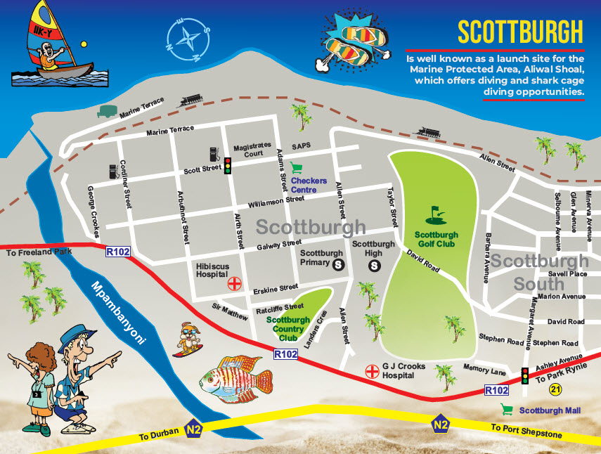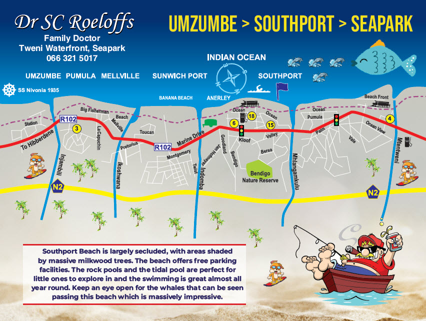 SOUTH COAST MAPS RANGING FROM SCOTTBURGH TO PORT EDWARD AND INLAND TO ORIBI GORGE.