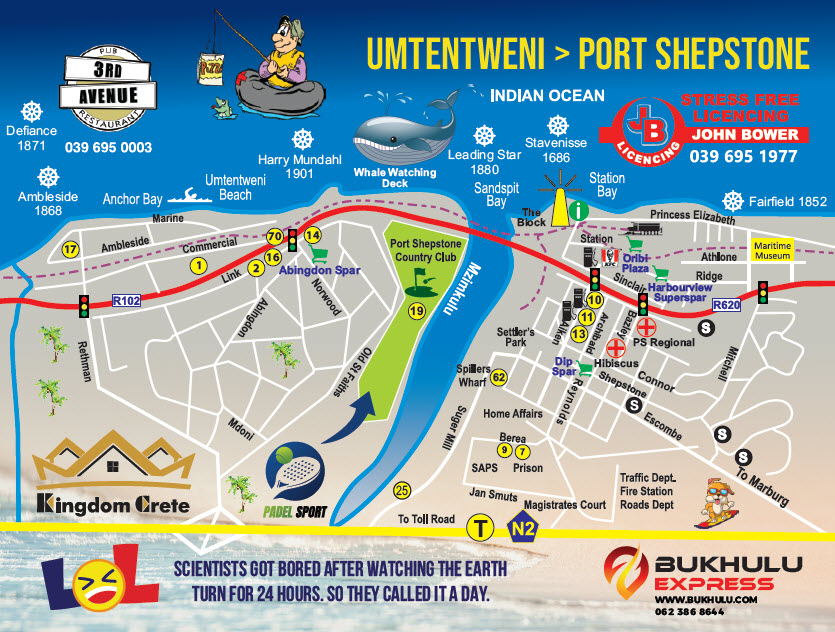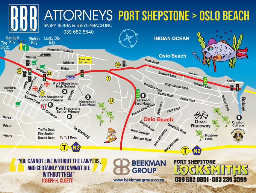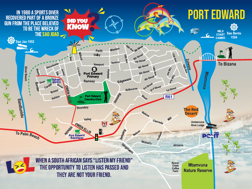 SOUTH COAST MAPS RANGING FROM SCOTTBURGH TO PORT EDWARD AND INLAND TO ORIBI GORGE.